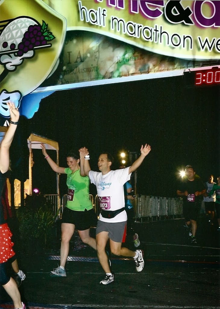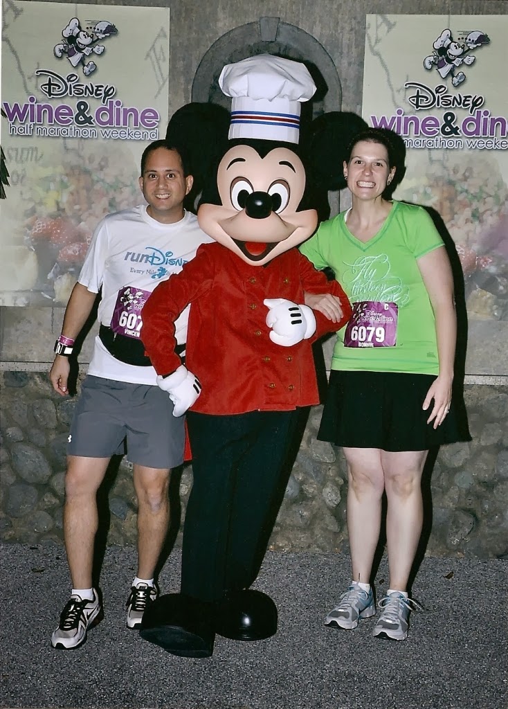 I know I am! I am running the 2013 Wine & Dine HalfMarathon with the Disbroads! I am so excited to have a girls’ weekend at Disney and to finally meet all my new friends in person. Patty invited me to write a guest post recapping my experience at last year’s Wine & Dine to get you all pumped for this year’s race. Last year was special to me because it was the first race I ran with my husband. It was his first half marathon and we had a great time running together.